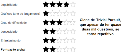 Assim, estamos perante mais um clone de Trivial Pursuit, com possibilidade de termos mil setecentas e cinquenta questões em sete blocos, relacionados com entretimento (filmes, música), desporto e ciência. O problema, tal como em todos os jogos do género, é que rapidamente se esgota o stock de perguntas e começamos a levar com questões repetidas, retirando algum (ou muito) interesse ao jogo.