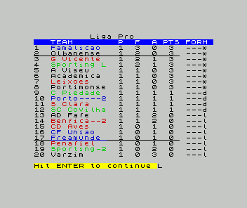 De vez em quando aparecem jogos como este Footballer of the Year. Programas com uma série de erros óbvios (tão óbvios que dá ideia de que foi feito à pressa), com pouca ou nenhuma diversidade, mas que nos dão um gozo danado e que dificilmente o largamos. E já agora, este jogo seguramente também serviu de inspiração para ZX Striker, do português Valdir, e que já aqui foi analisado.