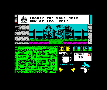 Imaginem então que estão na pele de um carteiro numa aldeia rural da Grã-Bretanha. Além das cartas que têm que entregar e que estão assinaladas com um "L" no mapa (que ocupa um quarto do ecrã), têm também que cumprir certas tarefas para os habitantes locais, pois só isso vos permite ter combustível, neste caso chá, para continuarem na difícil tarefa de distribuição do correio. De cada vez que cumprem com uma tarefa, isto é, encontrar um objecto e entregá-lo a quem procura, são recompensados com uma chávena de chá. Mas atenção, pois quando a chávena se esvazia, o jogo termina. Para complicar a coisa, de vez em quando um passaroco rouba-vos o correio e terão que ir à procura da carta roubada, perdendo precioso tempo.