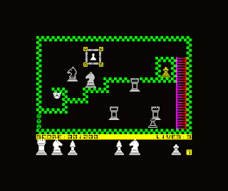Perante tantas dificuldades, as cinco vidas com que começam a vossa missão são manifestamente poucas até começarem a memorizar a melhor forma de escaparem às peças inimigas em cada nível. A não ser que façam alguma batota, como nós, que vamos salvando a nossa posição para conseguir ir avançando mais rapidamente. Mas experimentem jogar num Spectrum real e verão o que estamos a dizer.