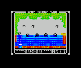 Está a aproximar-se o final do prazo da competição Zx Dev Conversions e começam a aparecer com maior frequência os candidatos ao prémio final. E como seria de esperar, uma boa parte dos jogos vêm dos nossos vizinhos. É o caso de Baby Monkey Alba, um platformer competente, e que se bem que curto (devido obviamente às limitações do Arcade Games Designer), consegue manter o interesse.
